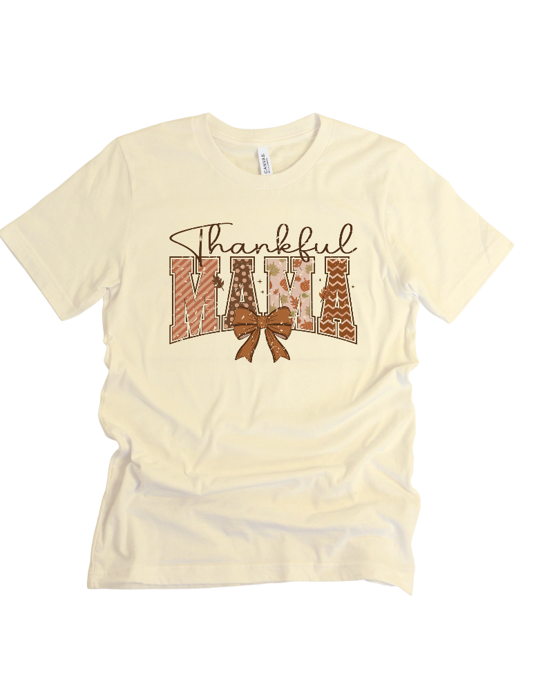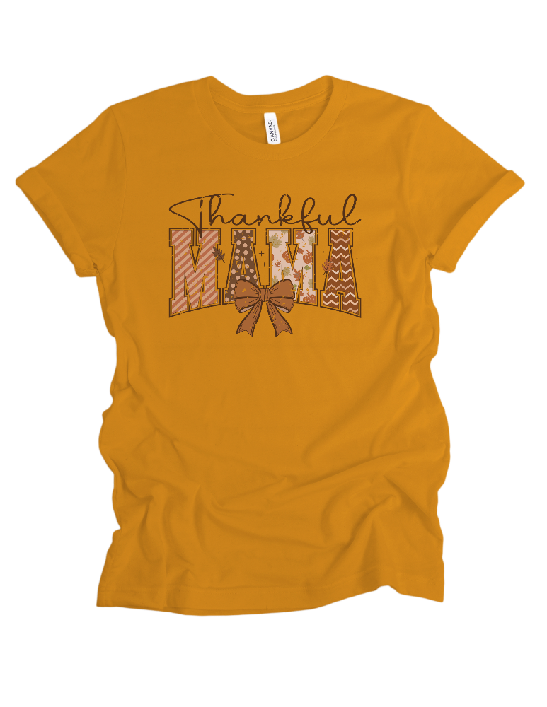Show off your gratitude in style with our Thankful Mama tee — the perfect blend of comfort and cozy fall vibes. Featuring a soft, premium cotton blend and a warm autumn-inspired design, this shirt is made for mamas who wear thankfulness every day. Pair it with your favorite jeans, leggings, or flannel for a cute and casual seasonal look.